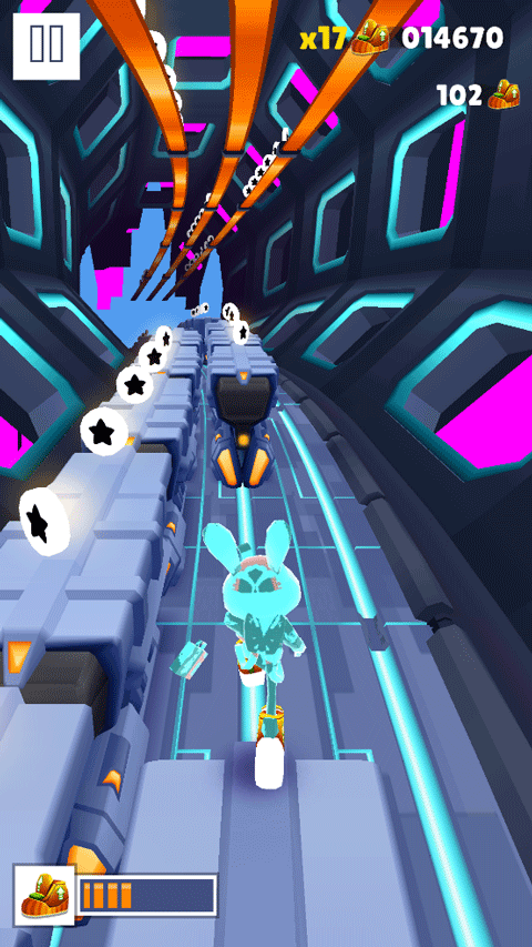 2、利用白色金币节奏:由于金币颜色更亮眼,玩家可以利用它来作为滑板起跳的参照物。当白色金币排列密集时,往往是使用滑板道具冲分的最佳时机。
