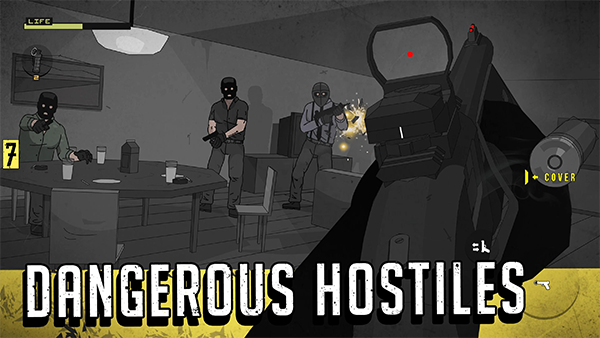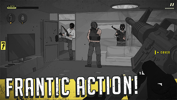 塞拉七号是一款非常独特的第一人称射击类型手游,凭借极简的黑白美术风格和粗犷的手绘线条,搭建了一个充满张力的反恐战场。它作为一款小体量的精品手游,抛弃了繁复的视觉干扰,将最纯粹的射击快感归还给玩家。玩家将扮演精英反恐部队的一员,穿梭于银行、仓库、废弃工厂等经典场景,凭借过人的枪法与战术意识,在枪林弹雨中解救人质,挫败恐怖分子的阴谋。虽然剧情简洁直接,但每一场战斗都足以让你肾上腺素飙升。击毙恐怖分子,将人质完好无损地解救出来吧。