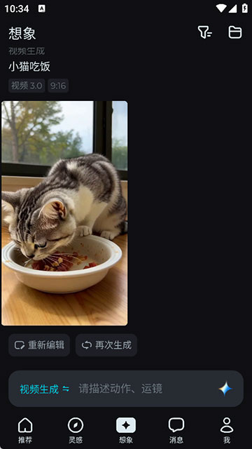 想要动态的表达?输入你的想法,即梦AI将生成视频,多轮尝试,得到满意的效果。
