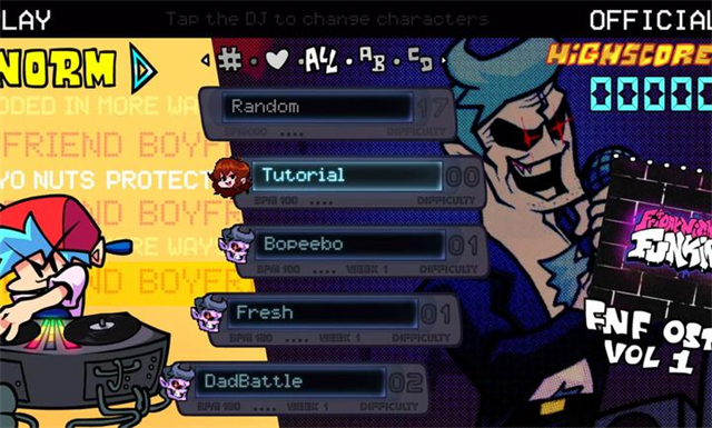 3、多元化的音乐曲库:游戏内包含了大量原创歌曲,涵盖了电子舞曲、嘻哈、摇滚、放克等多种音乐类型。每个关卡(每周)的曲目都与对手的风格完美契合,带来层层递进的听觉享受。