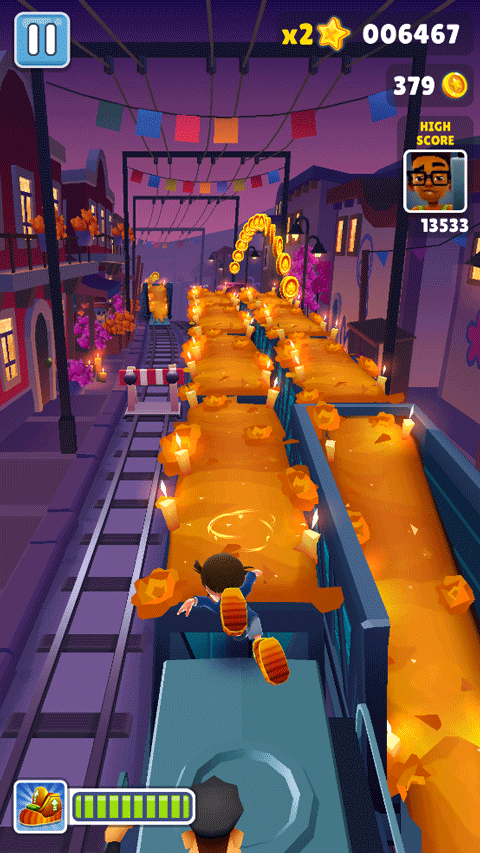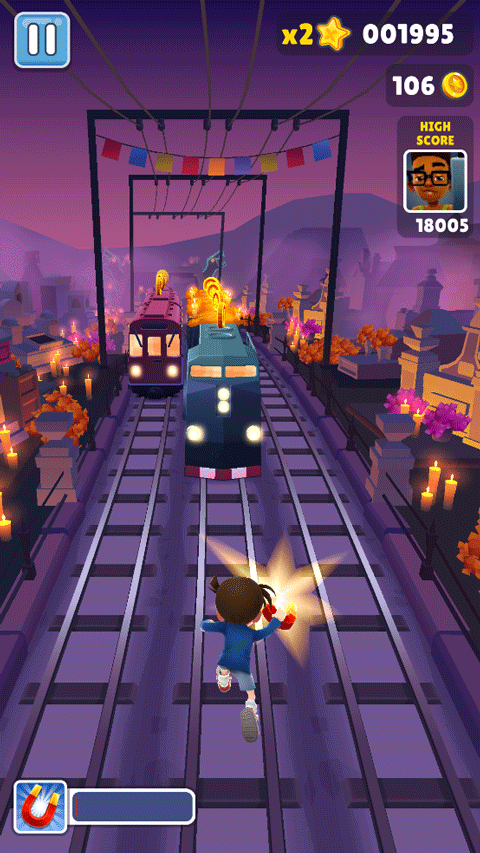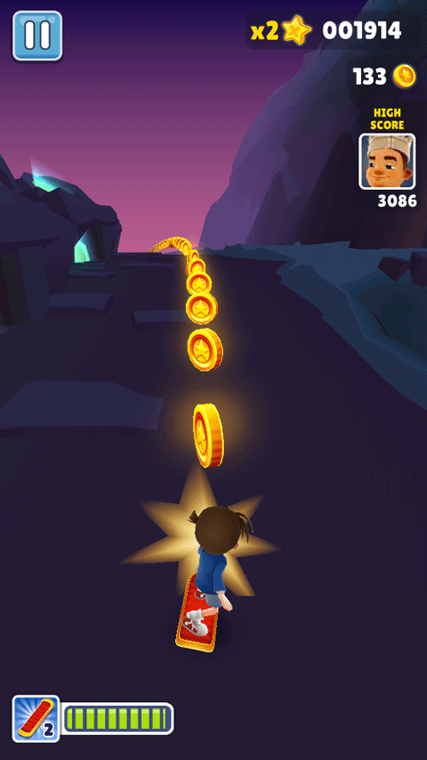 在奔跑过程中,玩家可以收集金币以购买或解锁各种神奇的道具。经典的磁铁可以自动吸取沿途金币,喷气背包能让角色飞上高空避开地面障碍并收集空中金币,而跳跃鞋则能提供惊人的弹跳力。这些道具的合理使用是突破高分的关键。
