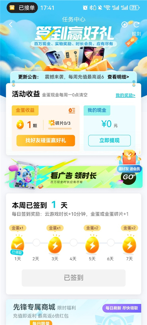 1、每日签到可以获取时长,签到分享给好友同样可以获取相应的时长;