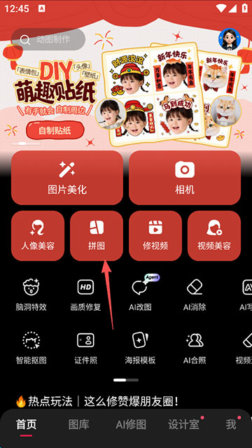 1、点击首页的拼图功能;