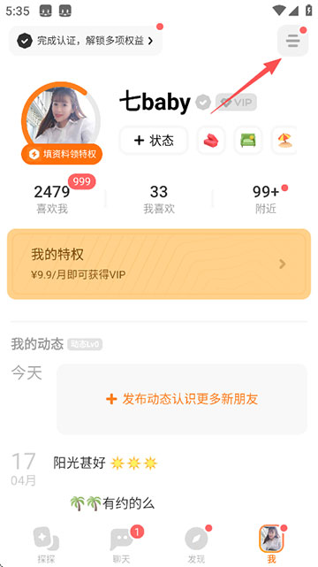 A:1、开启左上角的菜单栏-进入个人资料-编辑。