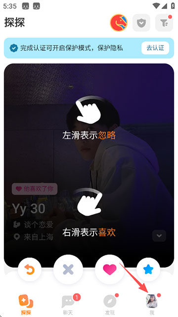 左滑不喜欢,右滑点个赞,配对无骚扰,选择由自己。