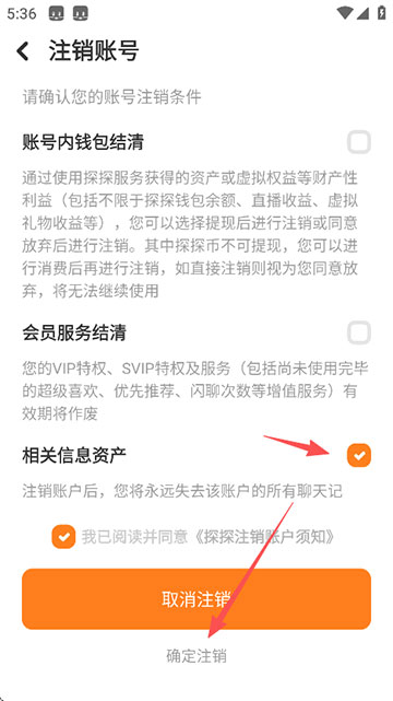 6、勾选相关信息,点击“确定注销”即可。