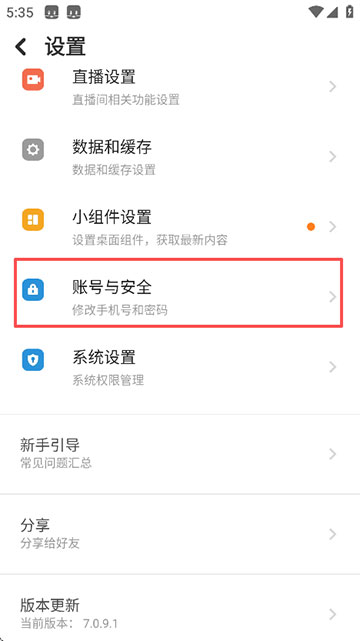 4、点击“账号与安全”;