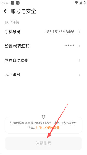 5、点击“注销账号”;