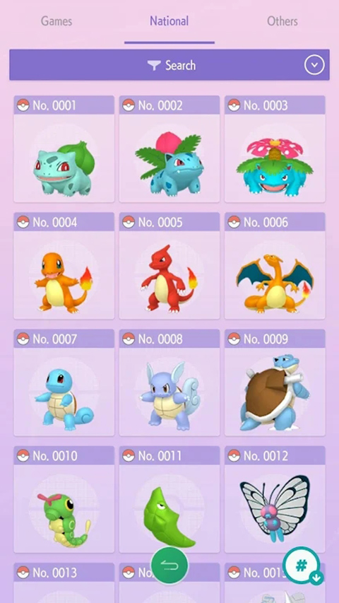 集大成般的全国图鉴:只要将宝可梦寄放到HOME,它们就会被自动添加到全国图鉴中。你可以在这里查看所有宝可梦的详细信息,甚至包括超级进化、超极巨化等特殊形态,并能一览它们在各个游戏版本中的图鉴说明 。