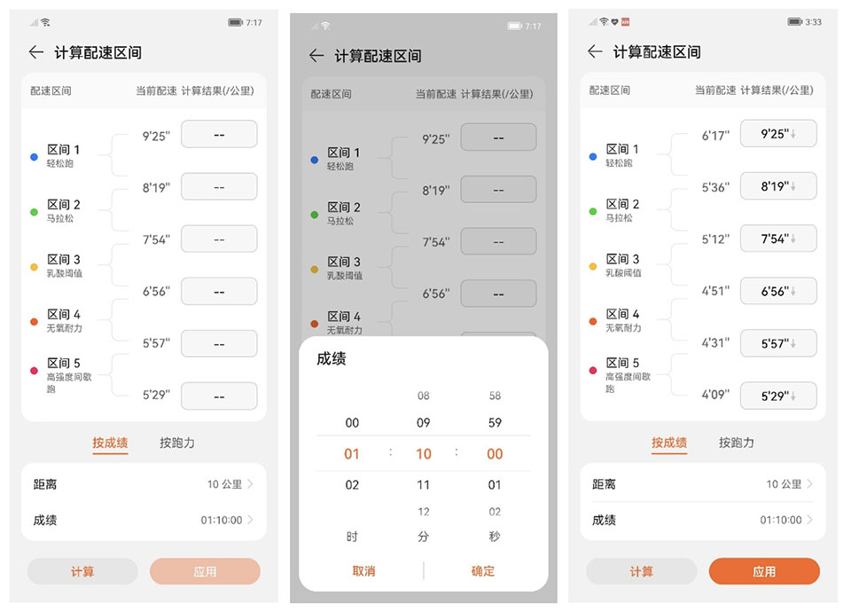 2、按成绩修改配速区间,根据最近跑步的距离及所用时间计算区间配速。