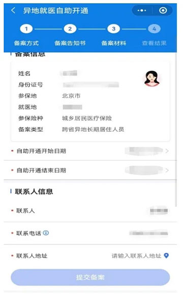 备案信息提交后,自动弹出提示页,提示备案是否成功,点击【查看备案记录】按钮,可查询异地就医备案状态。备案成功后,即时生效。