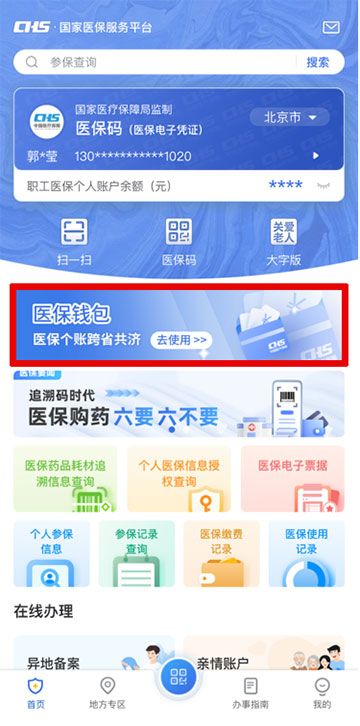1、打开国家医保服务平台APP,首页点击【医保钱包】;