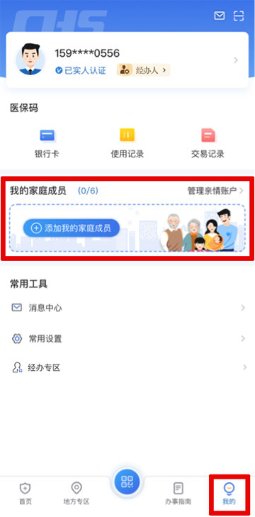 1、打开国家医保服务平台APP,点击【我的】 -【我的家庭成员】;
