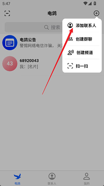 3、在搜索框中输入你想添加的好友电鸽号,点击搜索即可;