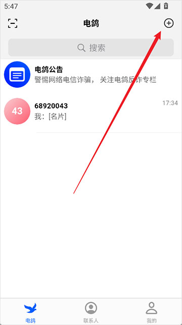 1、下载安装电鸽App,进入软件首页,点击右上角的“+”图标;