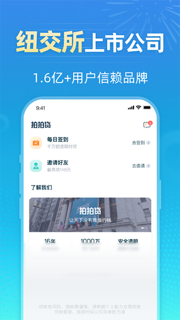 在数字化金融日益便捷的今天,借款App因其便捷、高效的特点,成为了许多人解决短期资金需求的首选!今天小编为大家推荐一款低门槛的贷款平台:拍拍贷借款App,该软件可以帮助用户进行借贷的同时还可以无息借贷,只需三分钟就能为你放款,超低的利率能够让你使用的时候更加地方便,并为你提供更好的服务,让你放心借!并且其以严格的风控体系、透明的收费标准、高效的客户服务,赢得了广大用户的信赖。