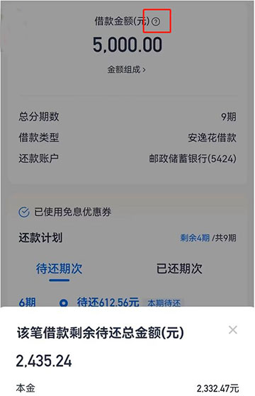 3、点击借款金额旁边的问号【?】,确认待还总金额;