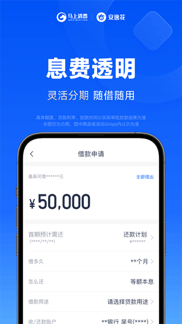 安逸花App是马上消费金融股份有限公司旗下的一款正规的借钱平台,用户可以在额度范围内进行分期借款贷款,在享受安全、专业、智能、便捷贷款同时,可自主提现支付,在额度范围内进行分期贷款、消费借款(购房、购车除外)。并且安逸花App严格遵循监管规定,无任何贷前隐性费用,所有收费项目均有明确公示,申请额度、变更还款账户等基础服务均免费提供,充分保障用户知情权。