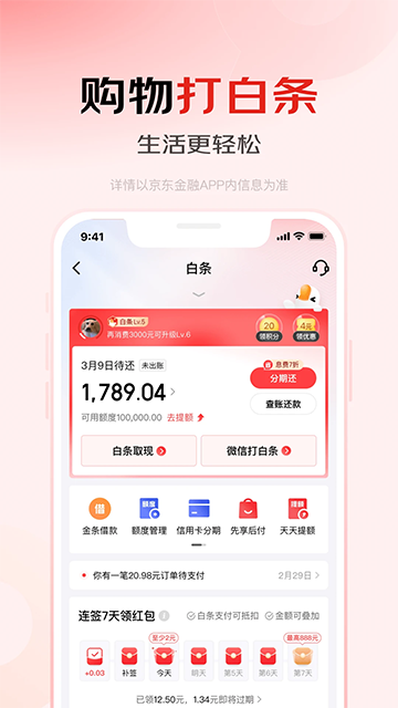 购物用京东白条,先消费后付款,分期免息更轻松;急用钱找京东金条借款,大平台、额度高、利息低、免息长