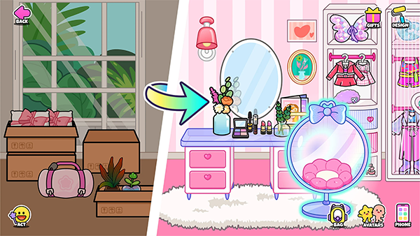 3、无拘无束的创意建造: 玩家可以化身为梦想改造家,利用超过3000件家具来设计你的完美家园 。无论是粉色的梦幻公主房、温馨的户外露营地,还是带泳池的豪华别墅,一切布局都由你亲手打造 。