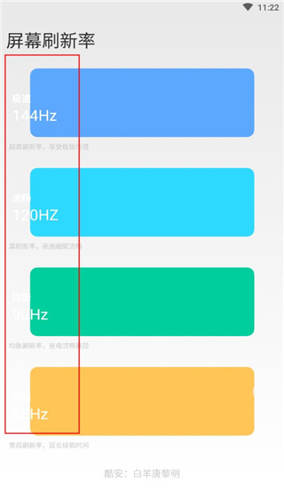 2、应用白名单:设置哪些应用使用高刷新率,哪些应用使用标准刷新率,灵活平衡流畅和省电。