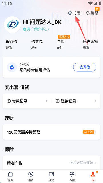 2、点击“设置”;