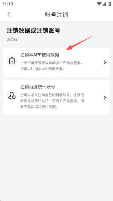 5、点击“注销本App使用数据”;