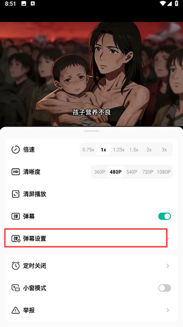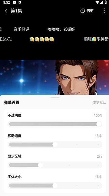 4、可调节弹幕的透明度、移动速度、显示区域、字体大小。