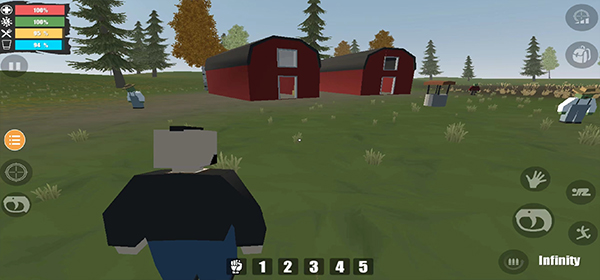 2、逼真的生存需求系统:你需要时刻关注角色的饥饿、口渴、体温和体力。食物可能腐烂,生肉可能让你食物中毒,受伤后需要用绷带止血,否则会持续掉血。甚至你还需要种植作物、蓄养动物来维持长期生存。