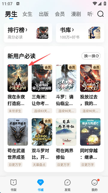 1、打开软件,选择自己喜欢看的小说;