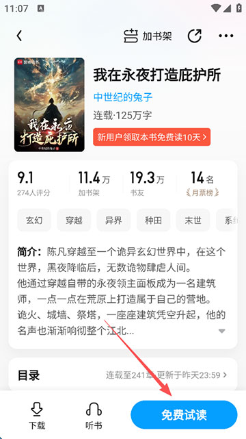2、点击免费阅读;