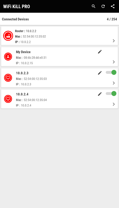 wifi无线杀手是一款网络安全测试与路由器管理工具,旨在帮助用户检测自家WiFi网络的安全状况,发现潜在的安全隐患,管理连接设备,防止他人蹭网。通过扫描网络中连接的设备,用户可以识别陌生设备并将其加入黑名单,确保网络资源不被非法占用。