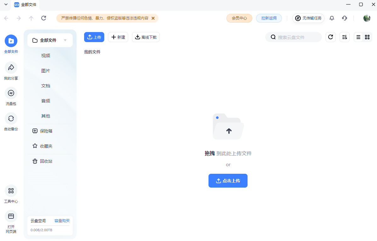 ②会员:客户端单个文件上限1TB、上传文件数量无限制。
