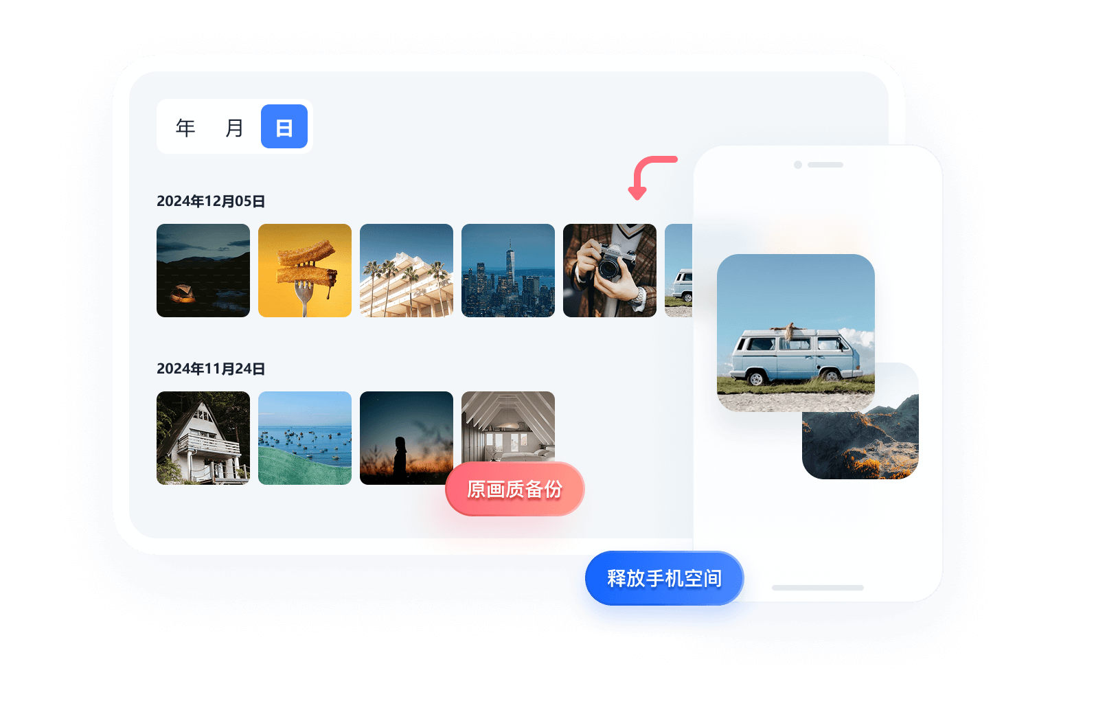 一键备份手机相册,美好时刻云端永存,原画质备份,释放手机空间,相册管理更便捷