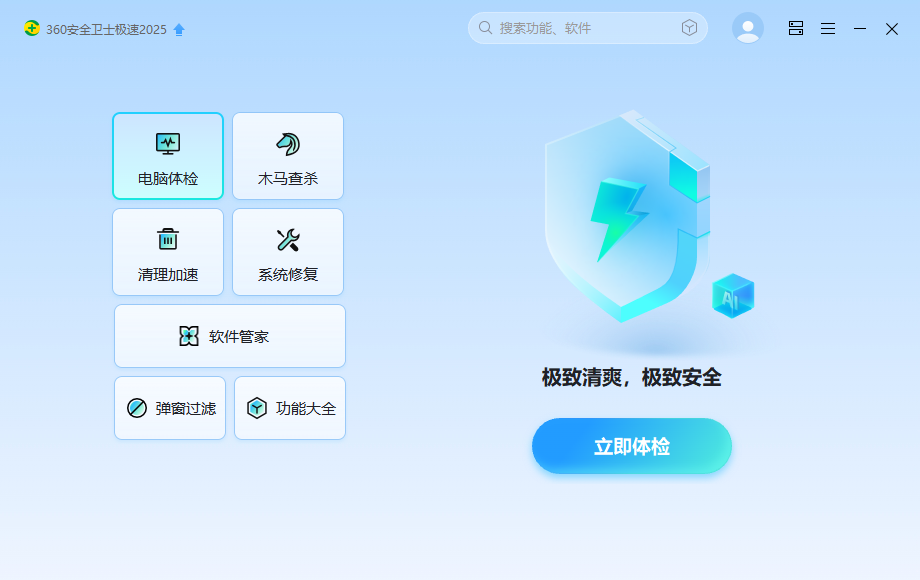 360安全卫士极速版是一款功能强大、体积小巧的安全软件,保留了电脑体检、查杀木马、修复漏洞、电脑清理、优化加速等实用功能,而且还提供了功能大全、软件管理、电脑门诊、娱乐等多项功能;每个功能模块进入后,页面呈极简风格,交互页面更加方便快捷,虽然视觉与操作上进行了大幅度的简化,但在安全守护方面“极速版”的能力不仅没有削弱!