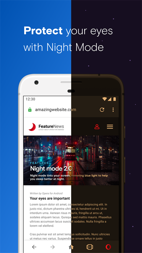 1、数据压缩技术:Opera自研“极速模式”,将网页数据压缩高达90%,加载更快,节省流量。