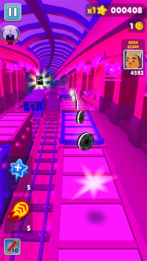 地铁跑酷忘忧制作隐身杰克版是一款根据原版修改而来的特殊版本。它对主角杰克进行了创意重塑,模型被修改为完全隐身状态。这意味着玩家将告别视觉依赖,进入一场纯粹考验盲跑技巧与空间记忆力的极限挑战。在这片铁轨上,你看不见奔跑的双腿,只能凭借对障碍物的感知和肌肉记忆一路狂飙。当然,如果你偏爱传统的视觉反馈,其他非隐身角色依然保持原貌,满足不同玩家的操作习惯。赶快来体验别样的奔跑感受吧。