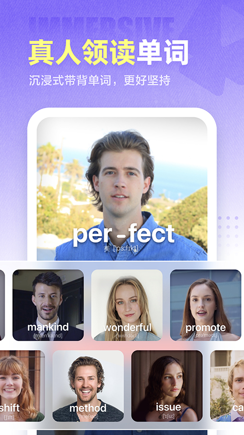 1、独家的实景背词模式:万词王最大的特色在于其首创的“真人实景”教学。平台邀请了数百位来自不同国家的专业外教,为每一个单词拍摄了高清的“口型视频”。在背单词时,不再是看枯燥的释义,而是观看外教在真实场景下的发音口型和表情,如同面对面教学,从根本上解决了“哑巴英语”和发音不准的问题。