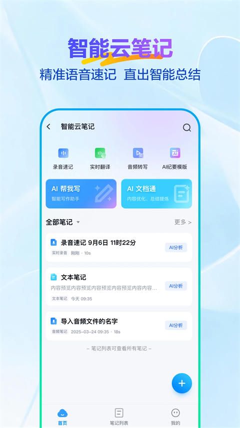 1、智能云笔记——录音速记,音频转写,AI 纪要,AI 帮我写,让效率追着你跑。