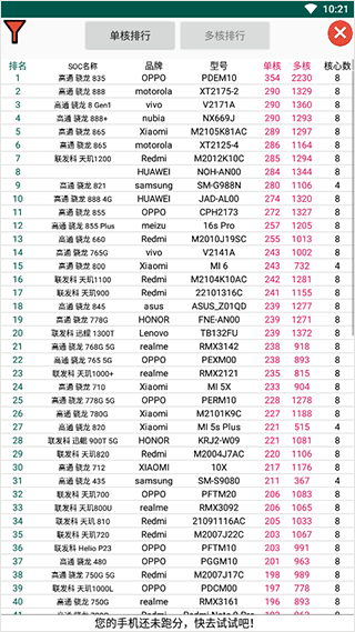 CPU真实跑分:通过测试国密SM3算法的每秒运算次数,得出单核与多核成绩。数据会上传至服务器进行比对,帮助用户在排行榜中了解自己手机性能所处的梯队,并匹配合适的SOC型号参考。