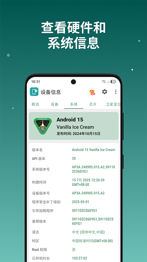 设备信息app是一款专业、全面且易于使用的设备信息检测工具。它能够深入系统底层,以极快的速度读取并展示手机的数百项详细信息,从基础的型号参数到专业的传感器数据,一应俱全。无论你是想核实新手机的真伪,还是排查旧手机的故障,都能为你提供最真实的数据支持。总的来说,无论你是极致的设备玩家还是普通用户,其都能让你对自己的爱机了如指掌,用机更方便快捷。