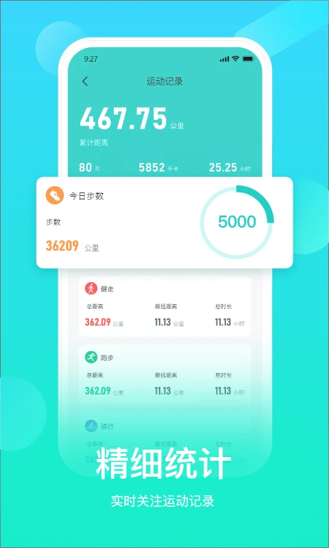 详尽数据报告:APP会自动生成多维度的健康数据报告。您可以直观地查看过去30天的运动趋势、卡路里消耗及平均数据,让健康变化一目了然,为制定科学的健身计划提供依据 。