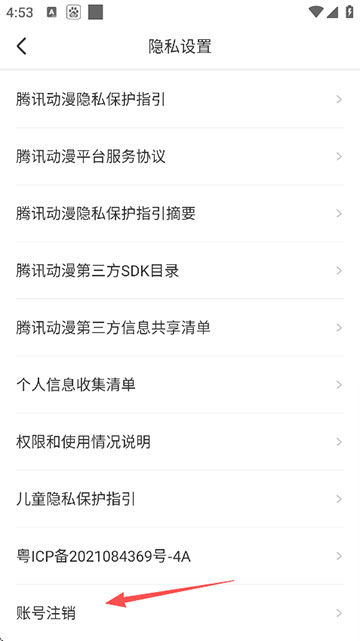 3、点击“账号注销”;