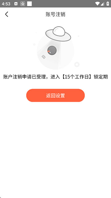 7、账号注销申请已经受理,进入【15个工作日】锁定期。