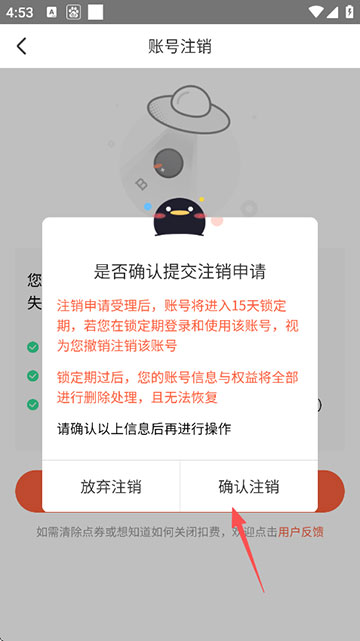 5、点击“确定注销”;