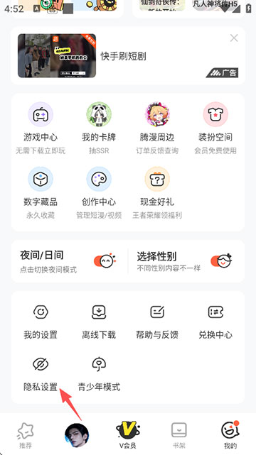 2、点击“隐私设置”;