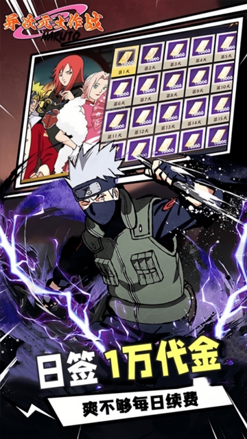 2、登录即赠50000代金券,自选6名神话品质忍者;