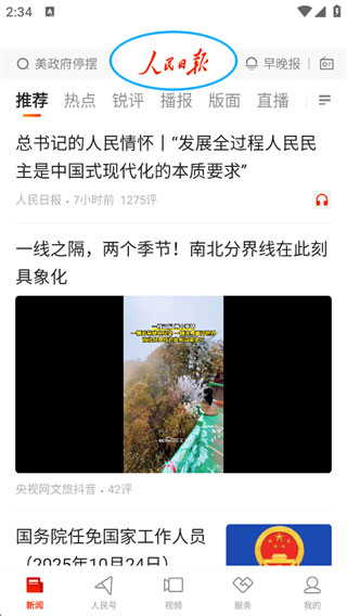 1、点击屏幕上方的“人民日报”LOGO;