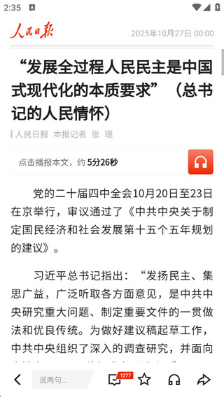 人民日报App是人民日报社的官方手机客户端,作为中央级主流媒体平台,具有极强的权威性与公信力。其不再局限于严肃的文字报道,而是综合运用图文、短视频、图解新闻、直播、H5等多种形式,将宏大叙事转化为大众易懂、愿意看、主动转的内容。在重大政策发布、突发事件报道、社会热点引导等方面,其始终坚持真实、准确、及时的原则,为公众提供可靠信息,有效遏制谣言传播,稳定社会舆论。同时人民日报App十分注重用户互动与公共价值引导,通过评论区、留言互动,搭建起媒体与用户沟通的桥梁,让用户从信息接收者变成参与者,增强了传播的贴近性与感染力。感兴趣的用户欢迎下载使用!