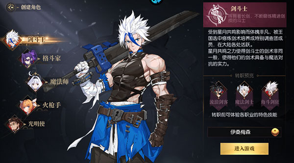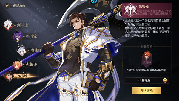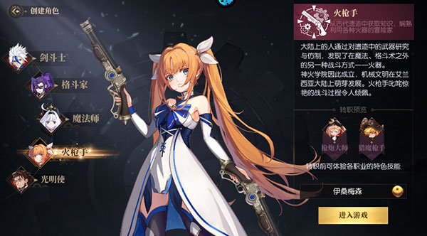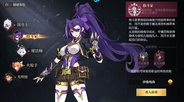进入游戏的时候大家可以初始选择五个不同的职业,分别是格斗家、火枪手、剑斗士、魔法师、光明使,每个职业都可以进行转职,不同的职业给大家带来的游玩效果也会有很大的区别,目前游戏中格斗家的操作比较简单也比较容易使用,所以小编比较推荐大家可以选择这个职业来进行游玩。